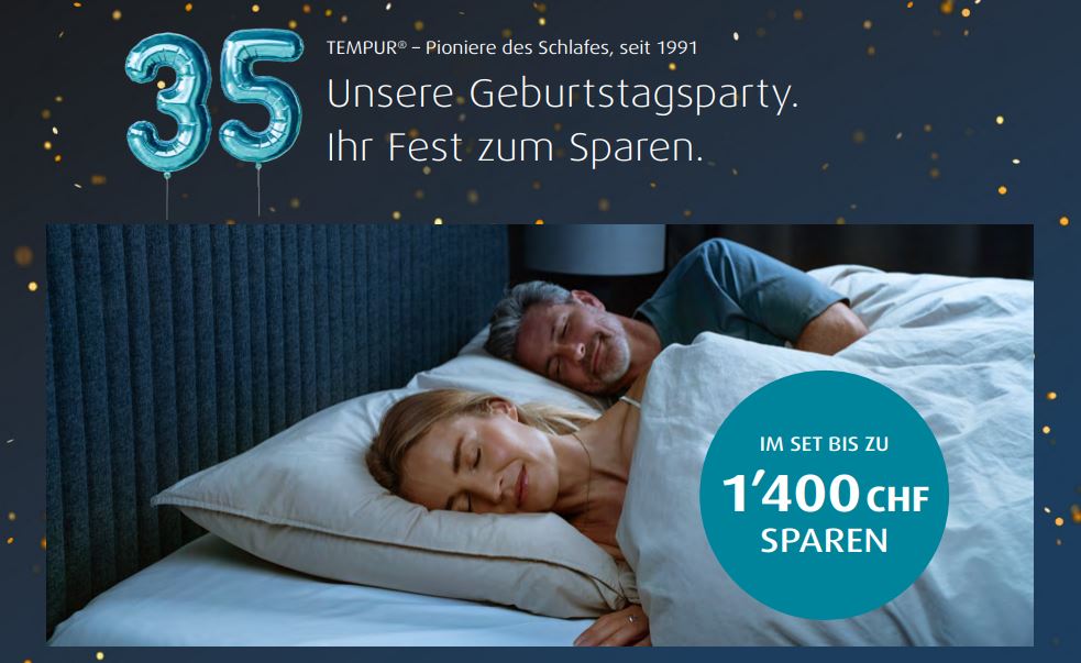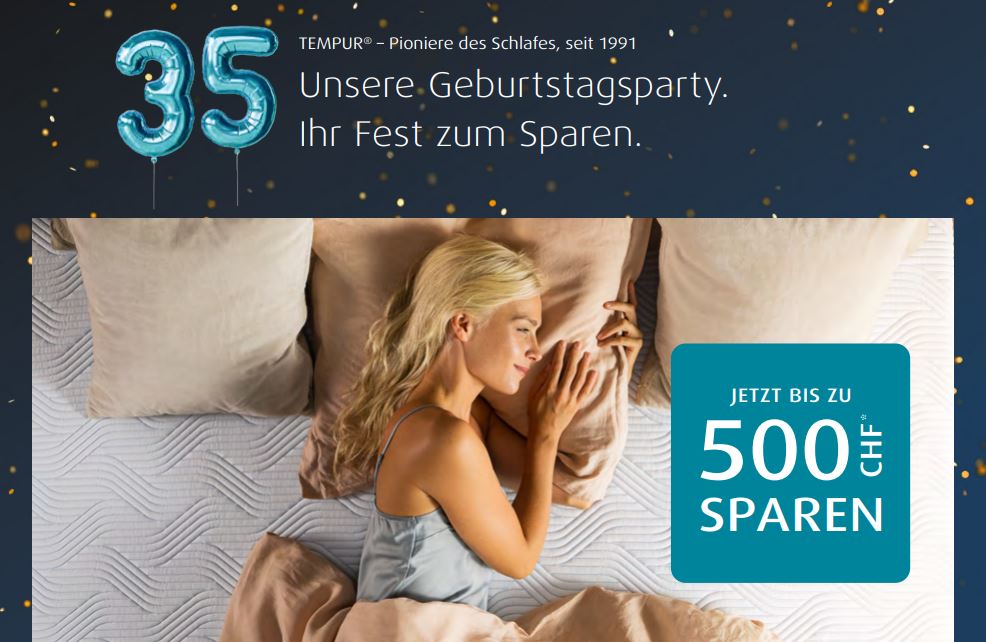 Tempur-Jubiläumsaktion – 35 Jahre Qualität genießen und bis zu CHF 1’400 sparen!