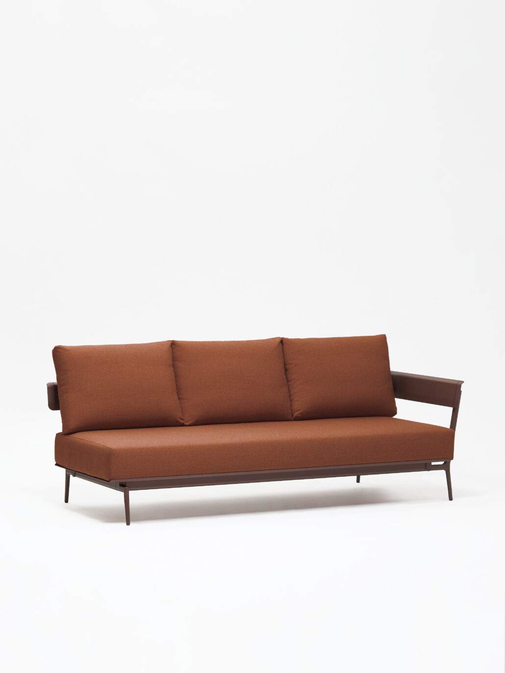 Ein echtes Wohnzimmer für draußen: Aikana ist ein System aus einzelnen, modularen Elementen, die Sie nach Belieben kombinieren können, um entweder großzügige oder gemütliche Sitzecken zu schaffen. Der Rahmen besteht aus Aluminiumdruckguss und stranggepresstem Aluminium, die Kissen sind vollständig abnehmbar.