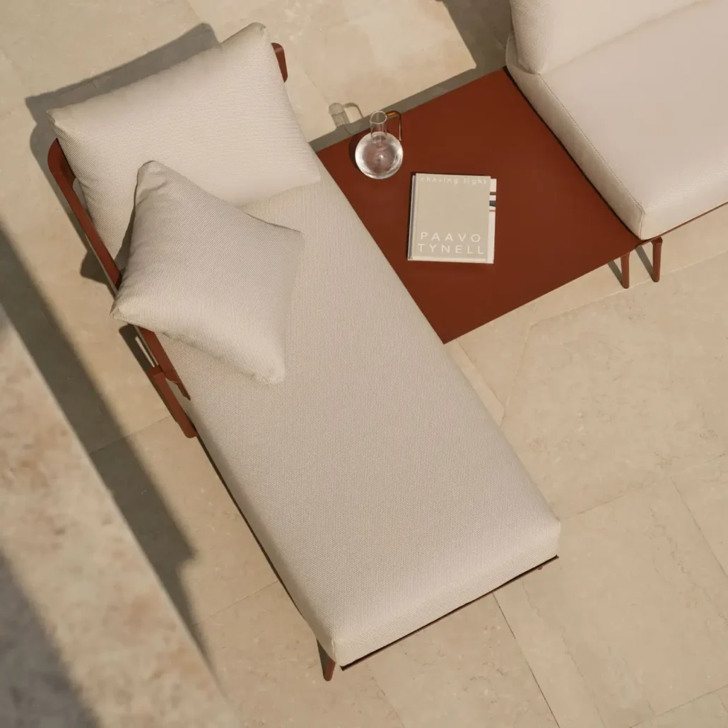Ein echtes Wohnzimmer für draußen: Aikana ist ein System aus einzelnen, modularen Elementen, die Sie nach Belieben kombinieren können, um entweder großzügige oder gemütliche Sitzecken zu schaffen. Der Rahmen besteht aus Aluminiumdruckguss und stranggepresstem Aluminium, die Kissen sind vollständig abnehmbar.