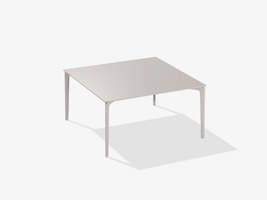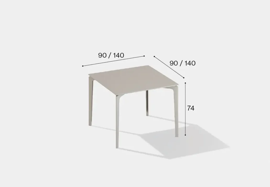 Eine Tischkollektion, die sich durch Individualisierbarkeit auszeichnet. Die gesamte AllSize-Kollektion ist sowohl hinsichtlich der Höhe als auch der Größe der Tischplatte individuell anpassbar. Der geometrische und strenge Stil von AllSize wird durch die Tischplatten unterstrichen, die mit Feinsteinzeug, Holz oder einer Steinoberfläche versehen sind und auf einem lackierten Aluminiumsockel ruhen, wodurch ein interessanter Kontrast zwischen den Materialien entsteht.