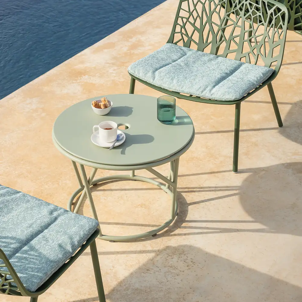 Der fast WILD Beistelltisch, designed von Robby Cantarutti & Partners erinnert an das Muster von verschlungenen Ästen im dicht bewachsenen Wald. Der Outdoor Couchtisch ist dank des Aluminiums leicht und robust. Das lackierte Aluminium macht den fast WILD Beistelltisch resistent gegen Wind und Wetter sowie das Ausbleichen durch die Sonne. Wählen Sie den Outdoor Beistelltisch in Ihrer Lieblingsfarbe und kombinieren Sie ihn farblich passend zu den Sitzmöbeln der fast FOREST Kollektion.