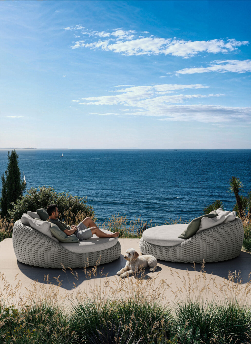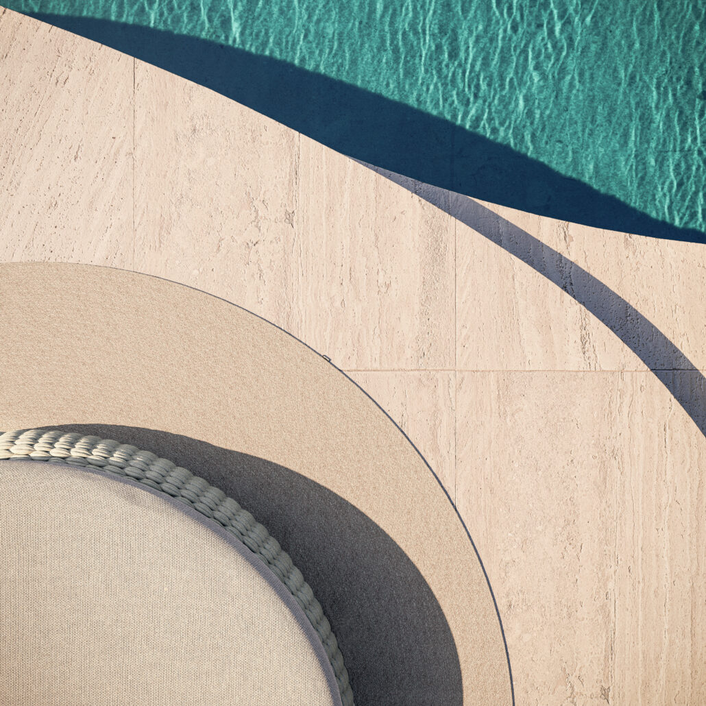 Das Manutti KOBO Daybed verbindet luxuriösen Komfort mit beeindruckendem Design – ideal für großzügige Outdoor‑Bereiche wie Terrasse, Garten oder Poollounge.