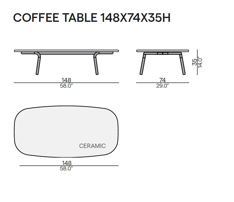 Gefertigt aus wetterfestem, pulverbeschichtetem Aluminium und einer robusten Keramikplatte, trotzt der Couchtisch allen Witterungsbedingungen. Die abgerundeten Kanten sorgen für eine weiche, elegante Linienführung, während verstellbare Füße eine stabile Ausrichtung auf unebenem Boden ermöglichen. Die geringe Höhe von 35 cm macht ihn zum perfekten Begleiter für Loungemöbel und niedrige Sitzgruppen im Freien.