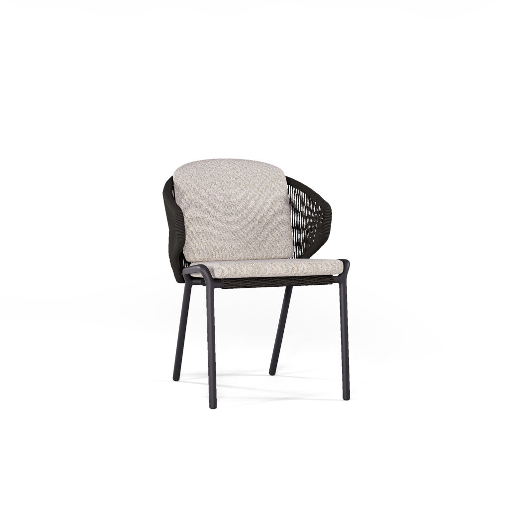 Der moderne Manutti RADOC Esstischstuhl, designed von Stephane De Winter kreiert ein Wohlfühl-Ambiente für exquisite Momente im Freien. Die seilumspannten Rücken- und Armstützen fügen sich nahtlos in das zeitlose Design ein. Ein farblich passendes Kissenset sorgt für den optimalen Komfort.