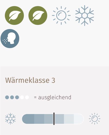 – Hohe Feuchtigkeitsaufnahme und ausgezeichnete Klimaregulierung