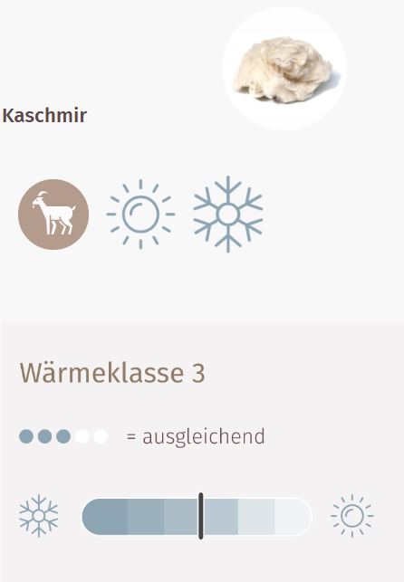 Das hochwertige Cashmere, das nur in kleinen Mengen jährlich von den Cashmereziegen produziert wird, sorgt für eine weiche, flauschige Oberfläche und ein unnachahmliches Schlafgefühl. Der Bezug aus daunendichtem Edelsatin aus 100% Baumwolle schützt das Cashmere und sorgt gleichzeitig für eine luxuriöse Haptik. Die Wolkensteppung gewährleistet, dass die Füllung gleichmäßig verteilt wird, um Ihnen zu jeder Jahreszeit den besten Schlafkomfort zu bieten.